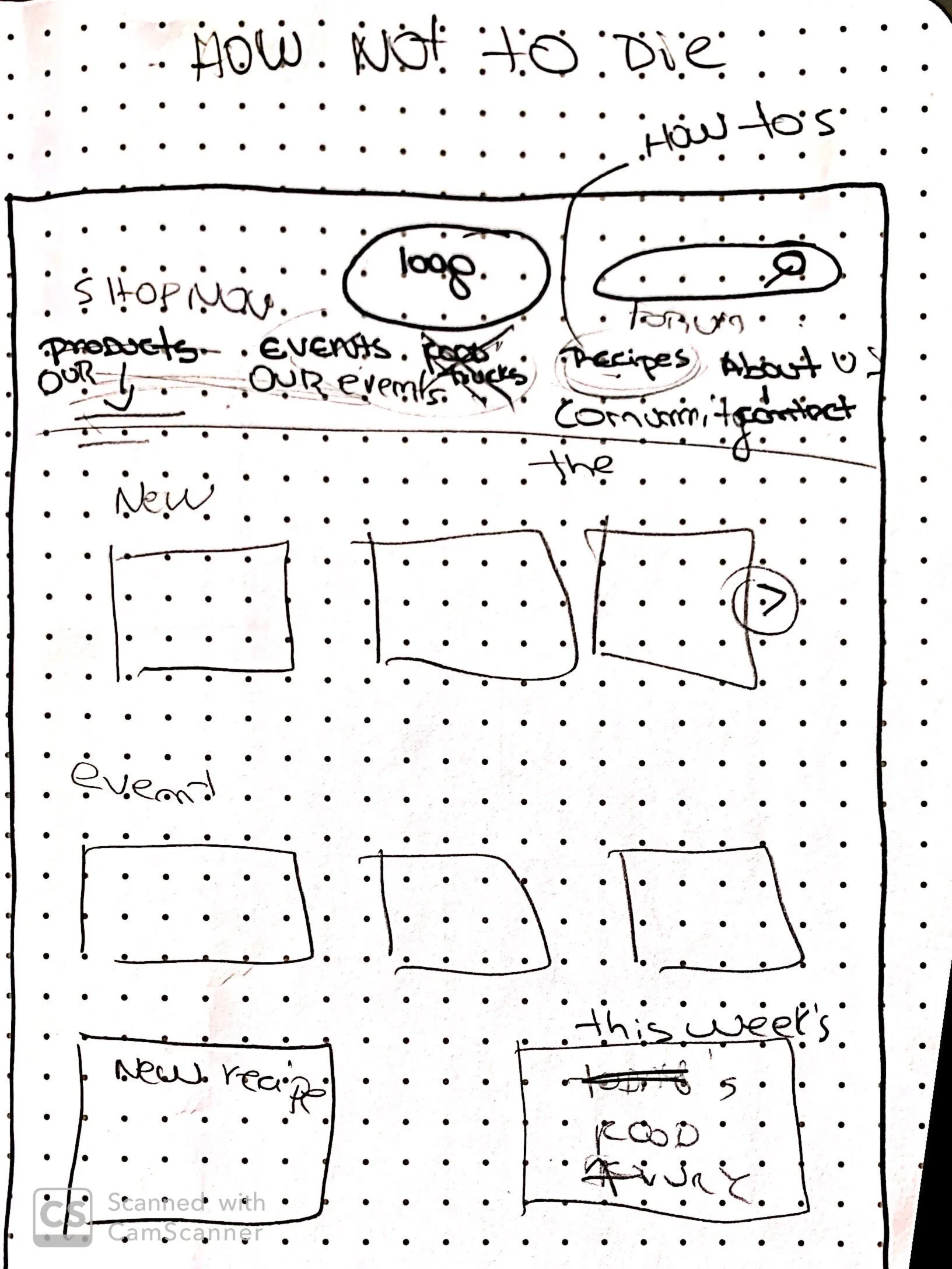 When sketching the home page, I faced a few challenges. Nooch offers an extensive list of products, which made it extremely difficult to organize the dropdown menu and the website’s architecture. I first focused on what was important to show on the menu bar. Based on the persona, I knew that events and community were one of the main goals.